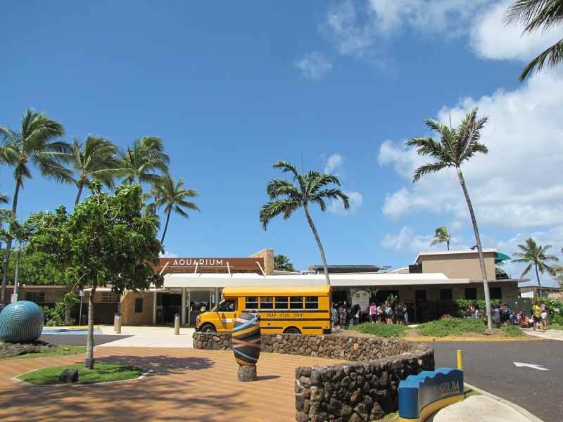 それぞれのツアー毎にバス乗車の案内係が居ました。 バス乗り場では映画でよく見るハワイの花で出来たレイではなく、貝殻で出来たネックレスを全員が貰いました。 両手に荷物を持っている状態だったので、首を前に差し出してかけて貰いました。