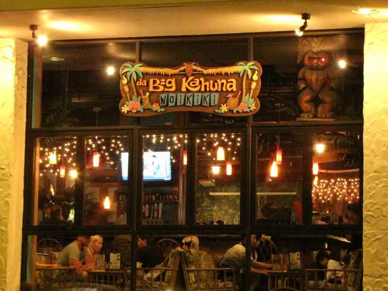 この店はいまいち雰囲気が…とか、ここは呼び込みが値段のことばかり言うからやめておこうだのと…夜のワイキキをうろうろ。 最終的には呼び込みのおじさんのポテトサービス…という言葉につられて…いやそれだけじゃなくて、メニューに好みのものがあったこともあって da Big Kahuna という店に入りました。