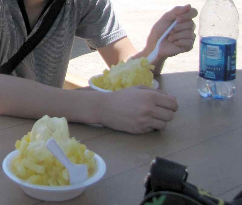 トローリー・バスでワイキキまで戻って昼食。 旅行代理店の入っているショッピングセンター前までトローリー・バスが行くので、まずは旅行代理店まで足を運んで何かソーダを飲んで落ち着いたところで、同じショッピングセンター内のフードコートへ…。