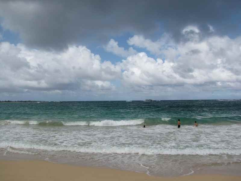 そうはいっても日本の海水浴場では経験できないぐらいの大きさの波がバンバン押し寄せて来るので、子供達は波に身を任せて遊んでいました。