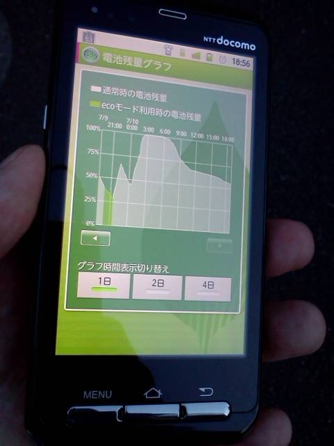 画像のグラフ…バッテリー満タンの状態から残量が急降下しているのは朝の通勤。