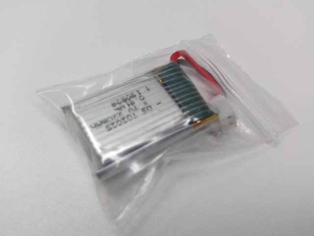 バッテリーは3.7V/150mAhのリチウムポリマー(リポ)バッテリーです。