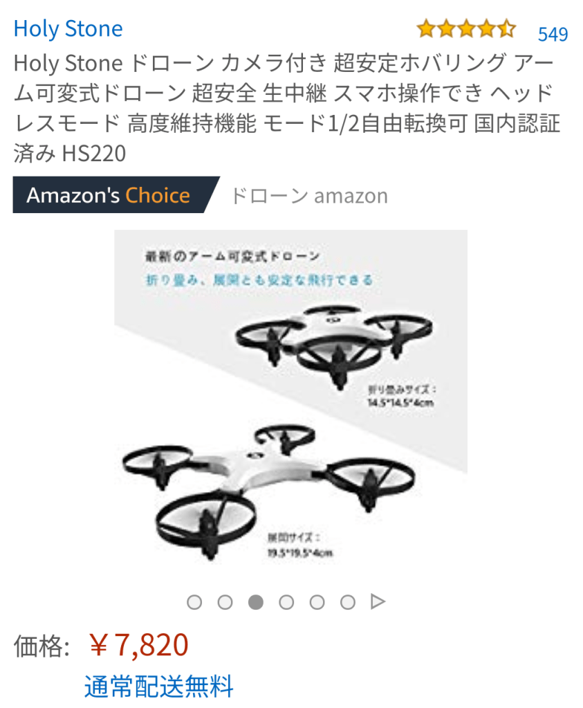 小型のドローンに絞ってネットの書き込み(ブログなど)を参考にアマゾンで探してみました。